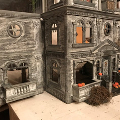 The little pumpkins were also in the halloween section with the other mini town props. Some decorative moss used to create some vines climbing up the side of the house.